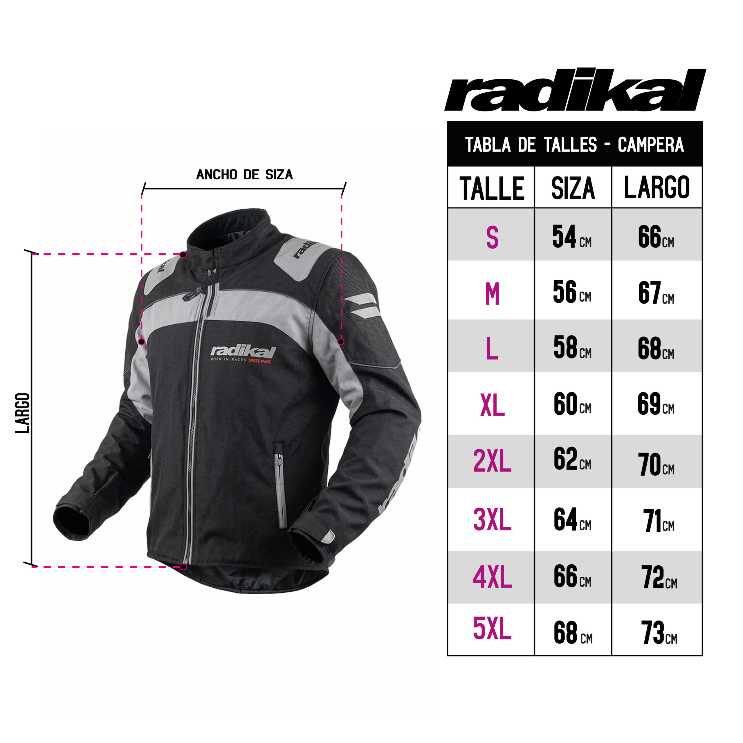 Talles: S – M – L – XL – 2XL – 3XL – 4XL – 5XL