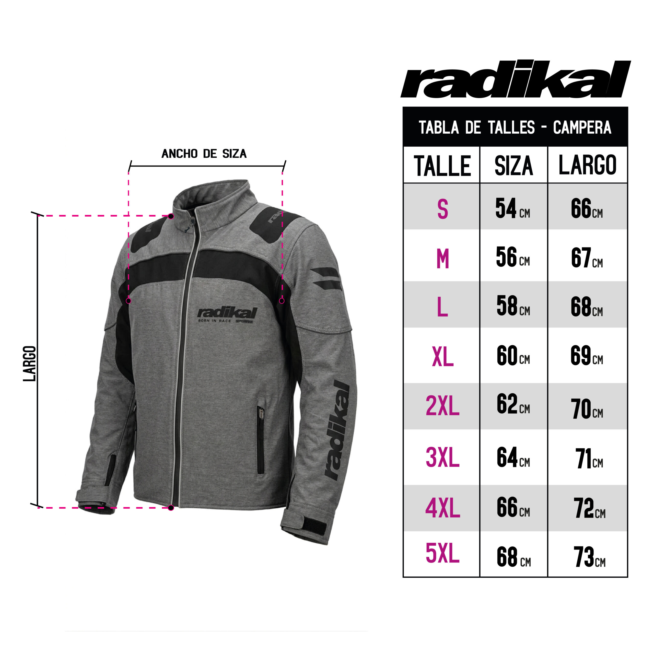 Talles: S – M – L – XL – 2XL – 3XL – 4XL – 5XL