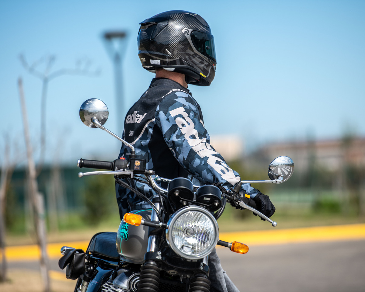 Campera de calle con material tricapa de poliéster y membrana impermeable, resistente al viento y respirable. Incluye protecciones removibles en hombros, codos y espalda. Gracias a su diseño ergonómico se adapta perfectamente a la silueta del motociclista.